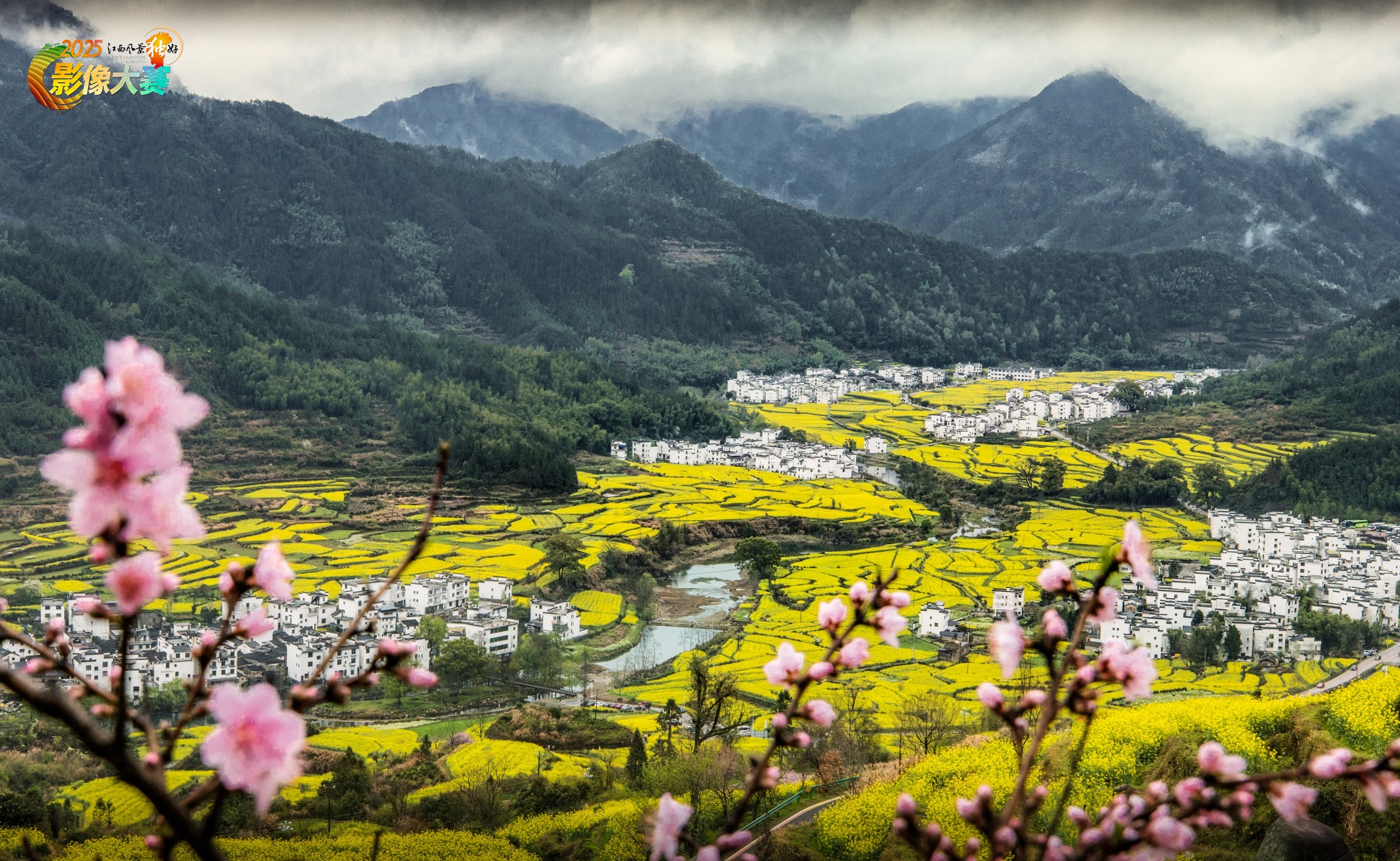 2023年3月25日,拍于上饶市婺源县江岭景区。层层梯田的油菜花,粉墙黛瓦的微派村落,远山云雾,还有前景的桃花点缀,一片江南的春意。