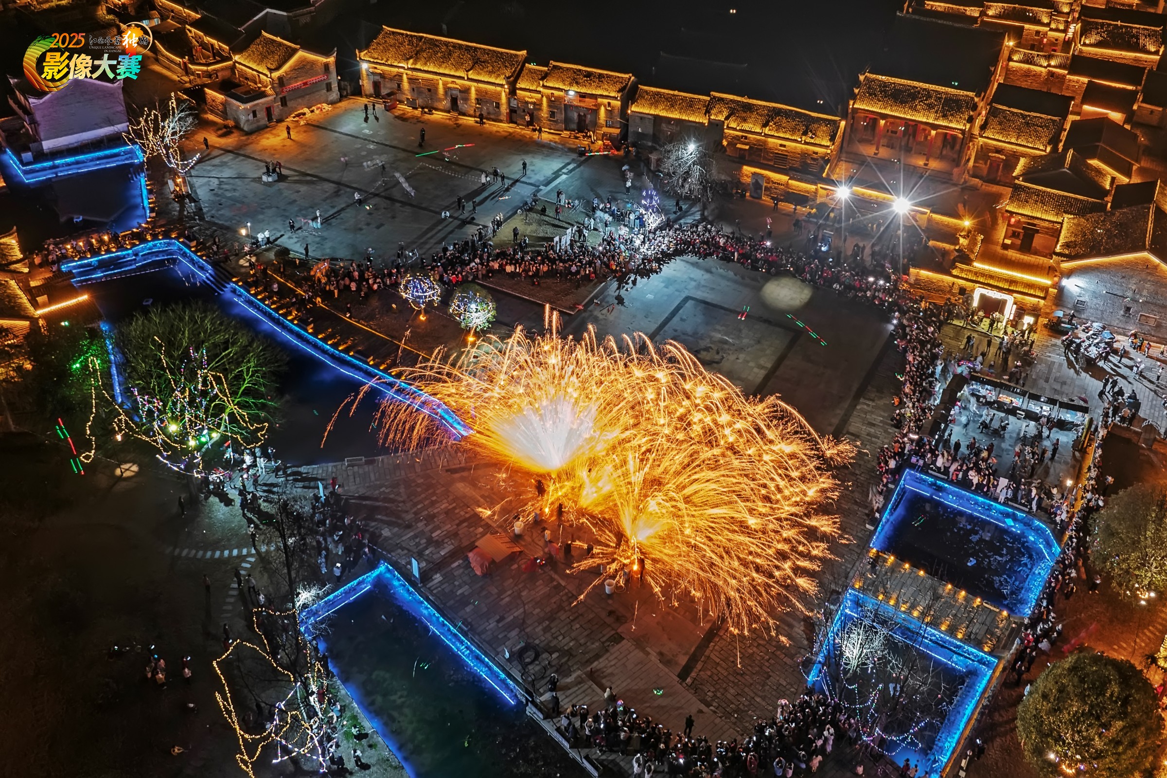 渼陂古村打铁花,2025年2月摄(数片图片堆栈合成)