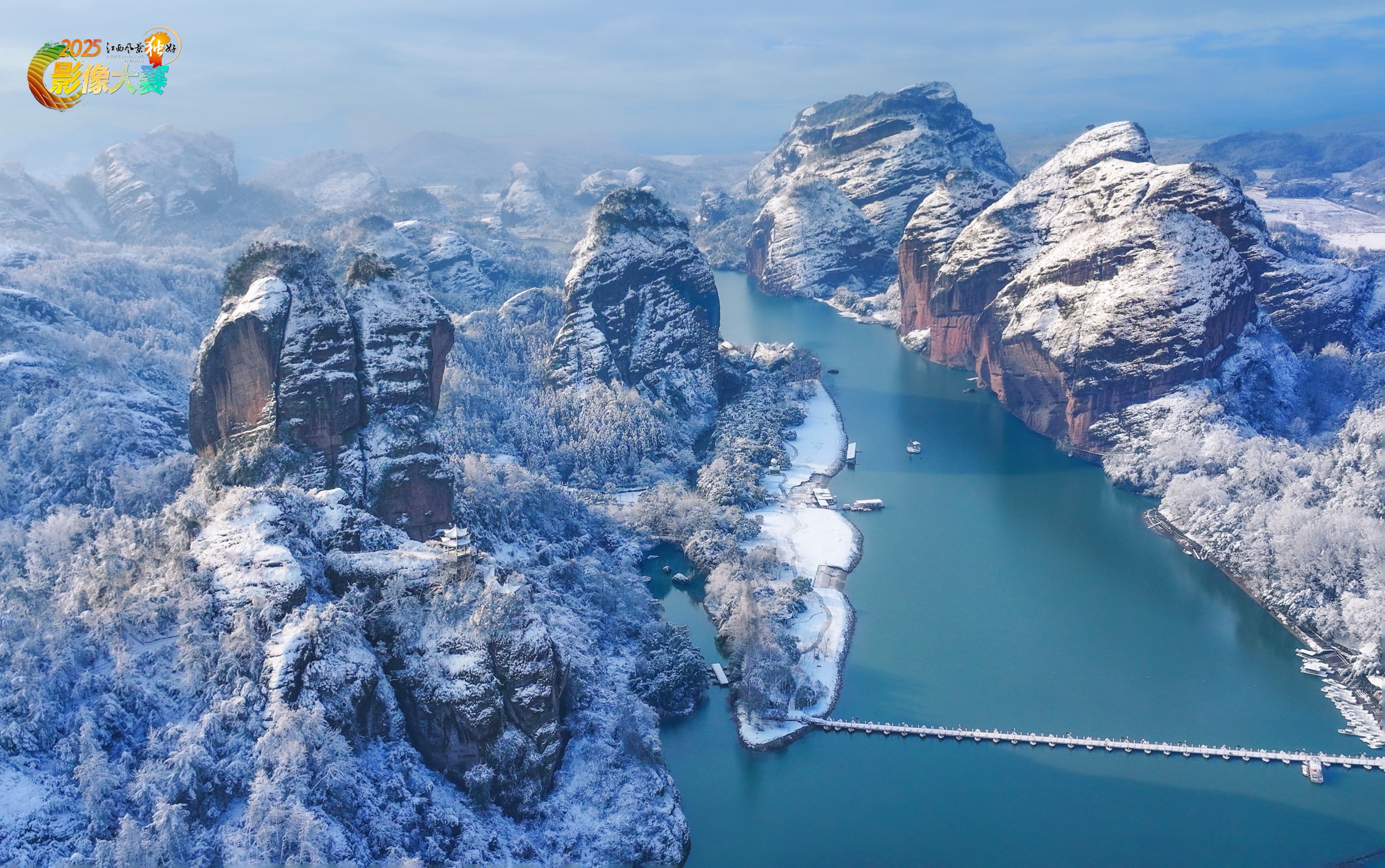 雪落龙虎山,将赭红崖壁裹上一层素白,丹山与白雪撞出清冽诗意。雾凇凝在枝桠,栈道隐于雪雾,连千年丹霞都似放缓了脚步,静候一场雪后的晨光。