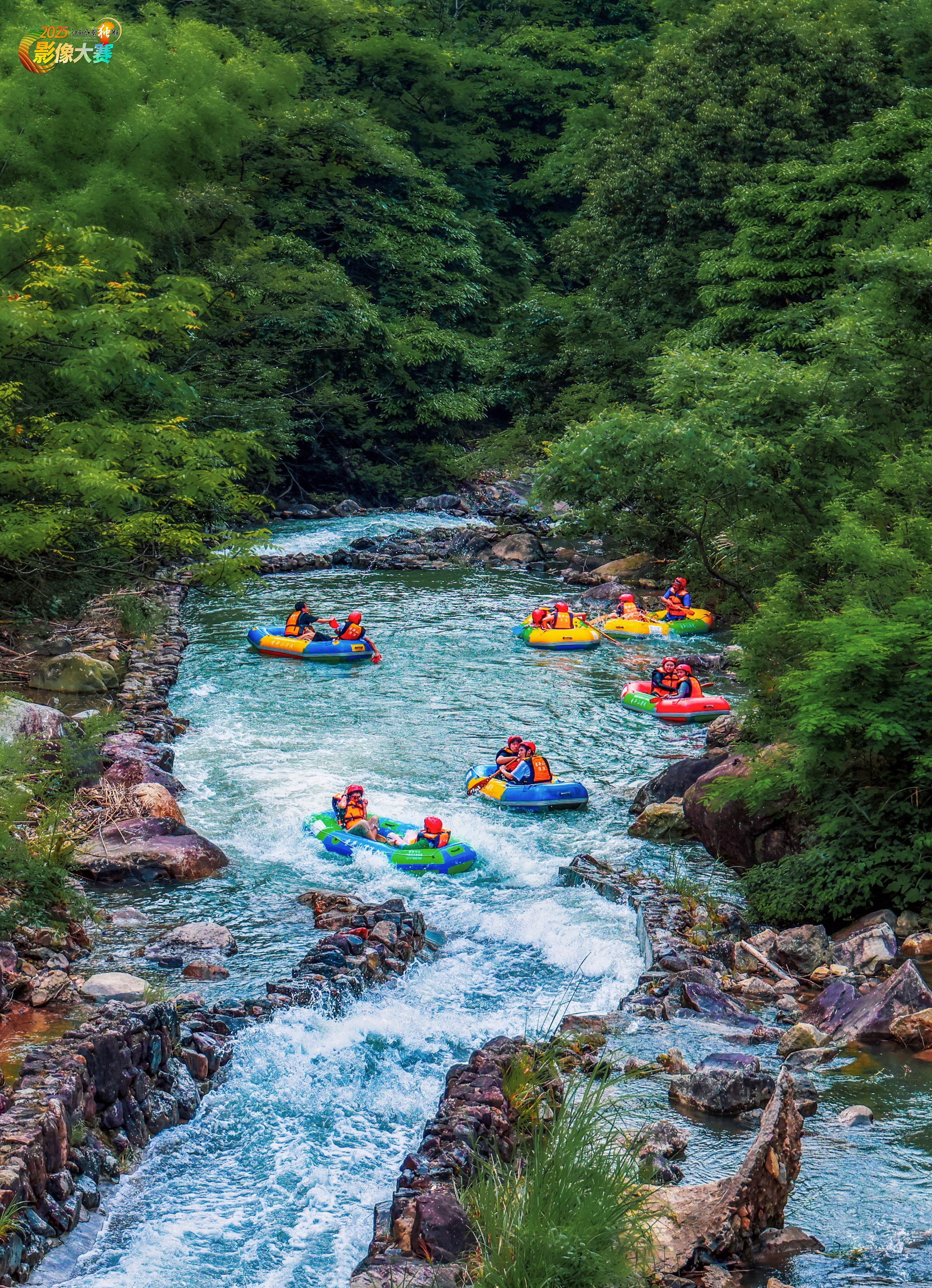 炎炎夏日,龙虎山圣井山漂流吸引众多游客前来玩耍,享受清凉时光。