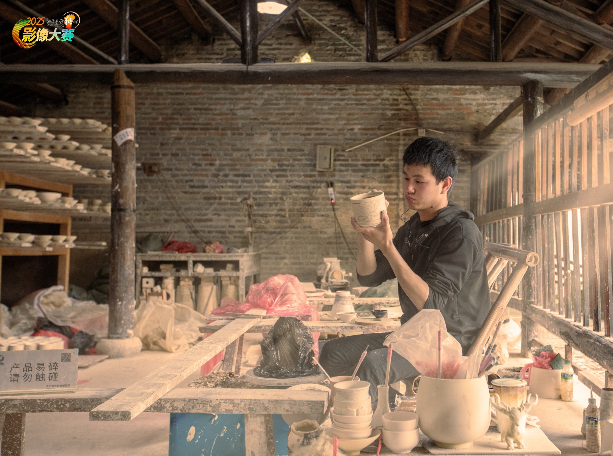 吉州窑陶艺工坊内,青年匠人专注琢陶,传承手工陶瓷的匠心温度。