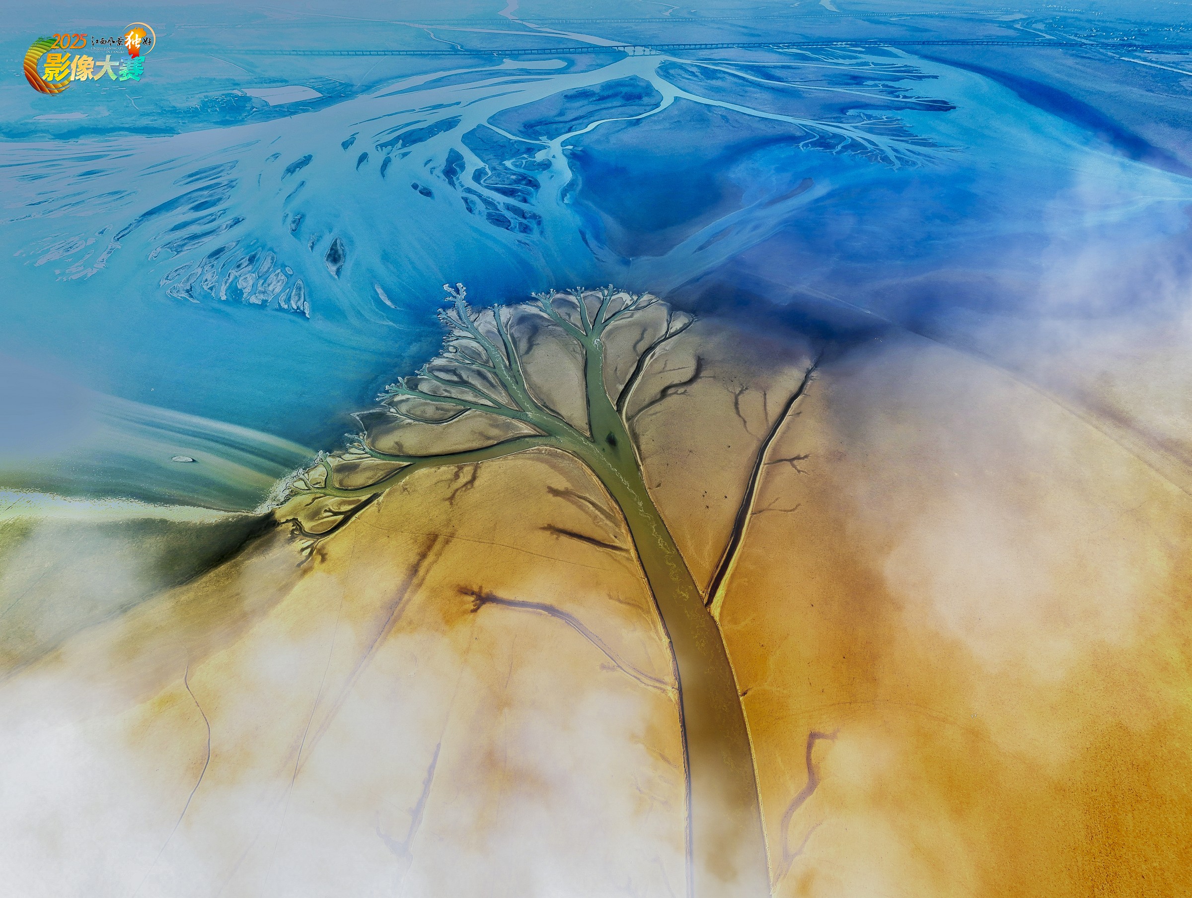 在流水的冲刷下,鄱阳湖进贤金溪湖水域出现一块块巨大的沟壑,蜿蜒曲折,犹如人体的脉络。