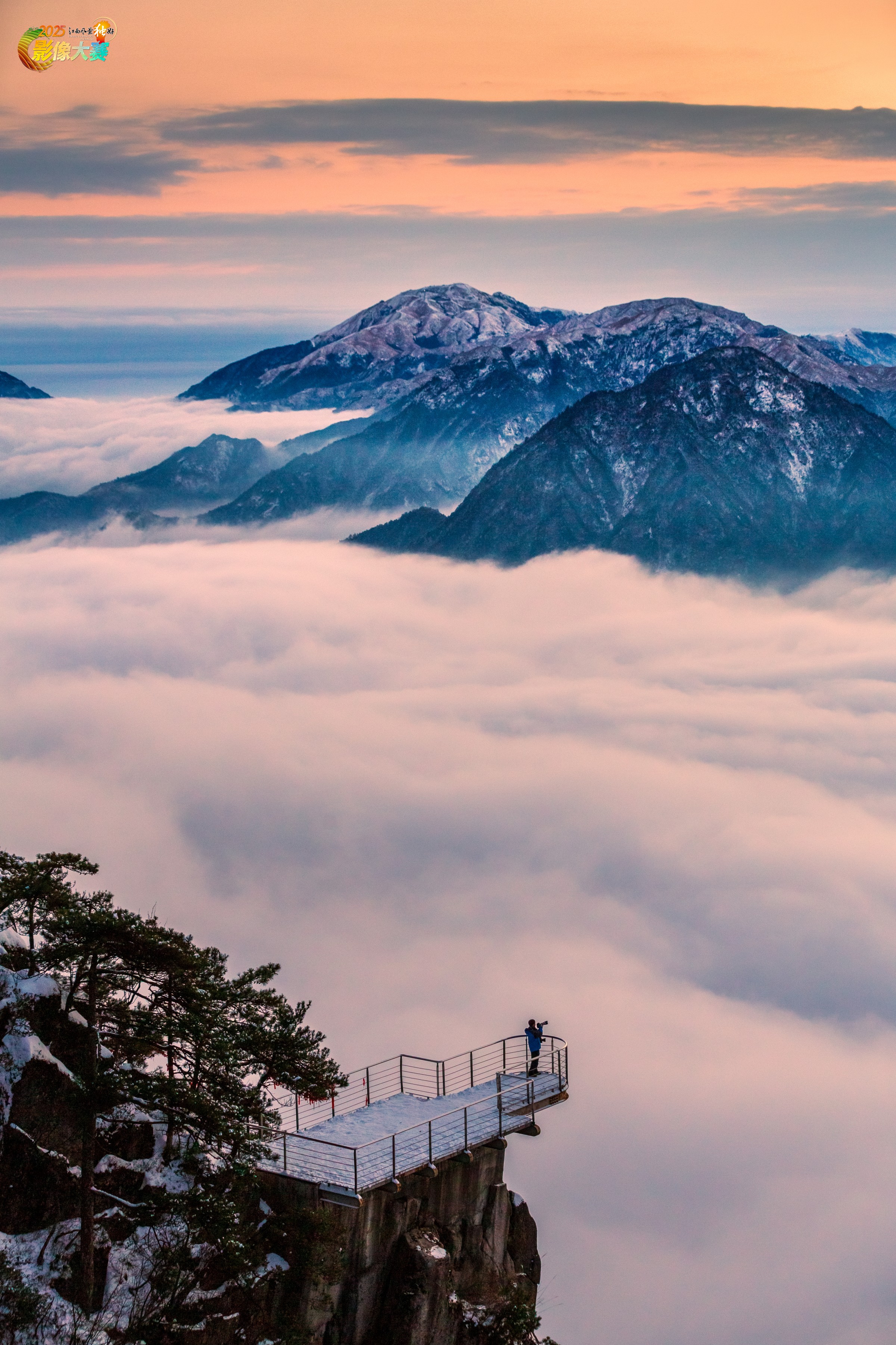 2024年1月24日,在晚霞的映照下,云端仙境白鹤峰,正吸引着一位摄影师高举相机,感慨与自然的浪漫邂逅。