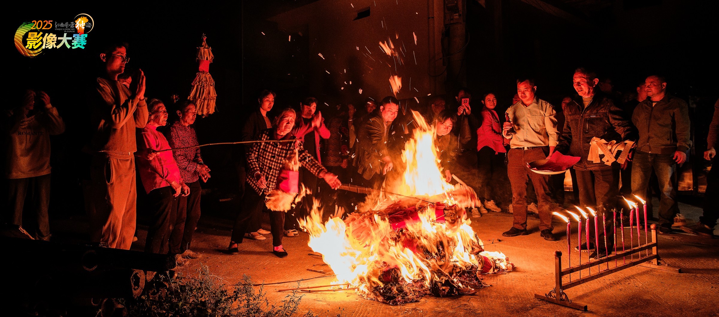 2025年10月29日,这一天是九九重阳节,在江西赣州市赣县区吉埠镇石含村,家家户户设坛摆桌祭拜"九皇",村民们把自制的金银长钱,用竹梢挂上,并用红纸写上全家人的姓名和吉祥祝福语等、然后在祖祠堂上祭祖焚香,完成仪式后,唢呐相送,族人巡游至村外水口,再举行焚烧祭拜、鞭炮齐鸣,祈福国泰民安。