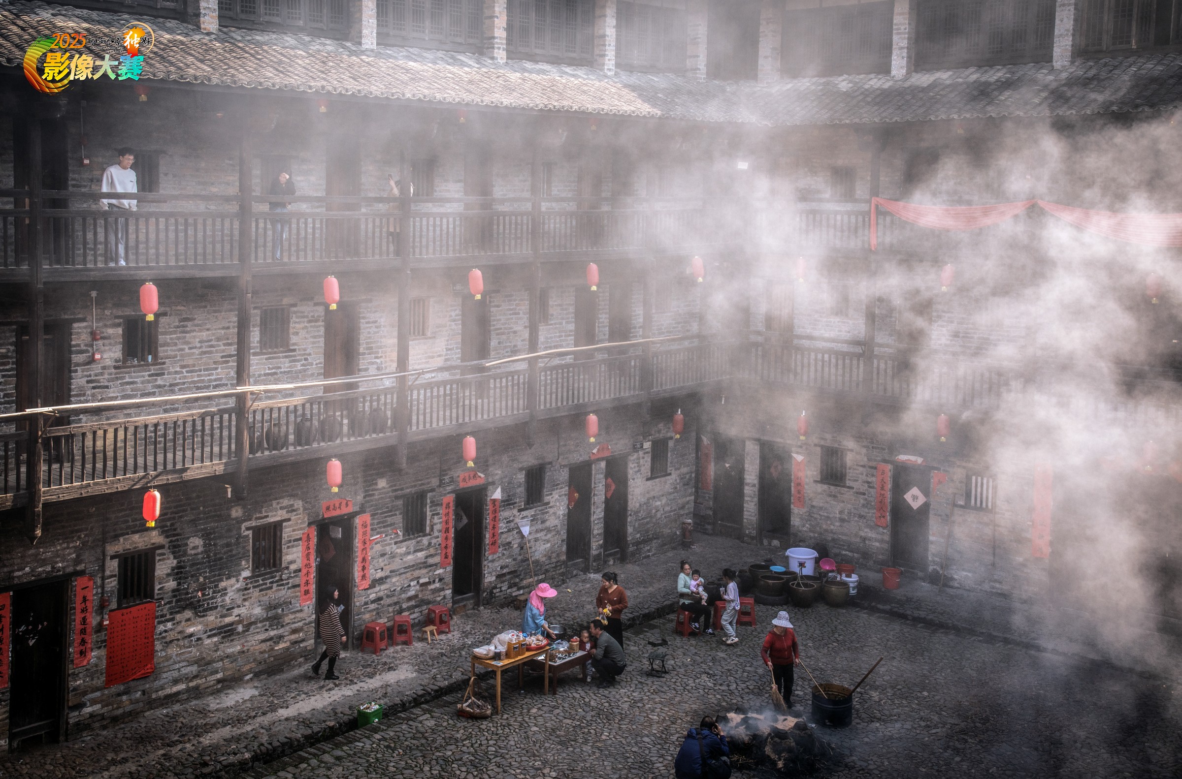 江西赣州市所辖的龙南市,有一古围叫燕翼围内高四层。早春的阳光从围屋的上空一泄而下,照在煨酒的时光里。