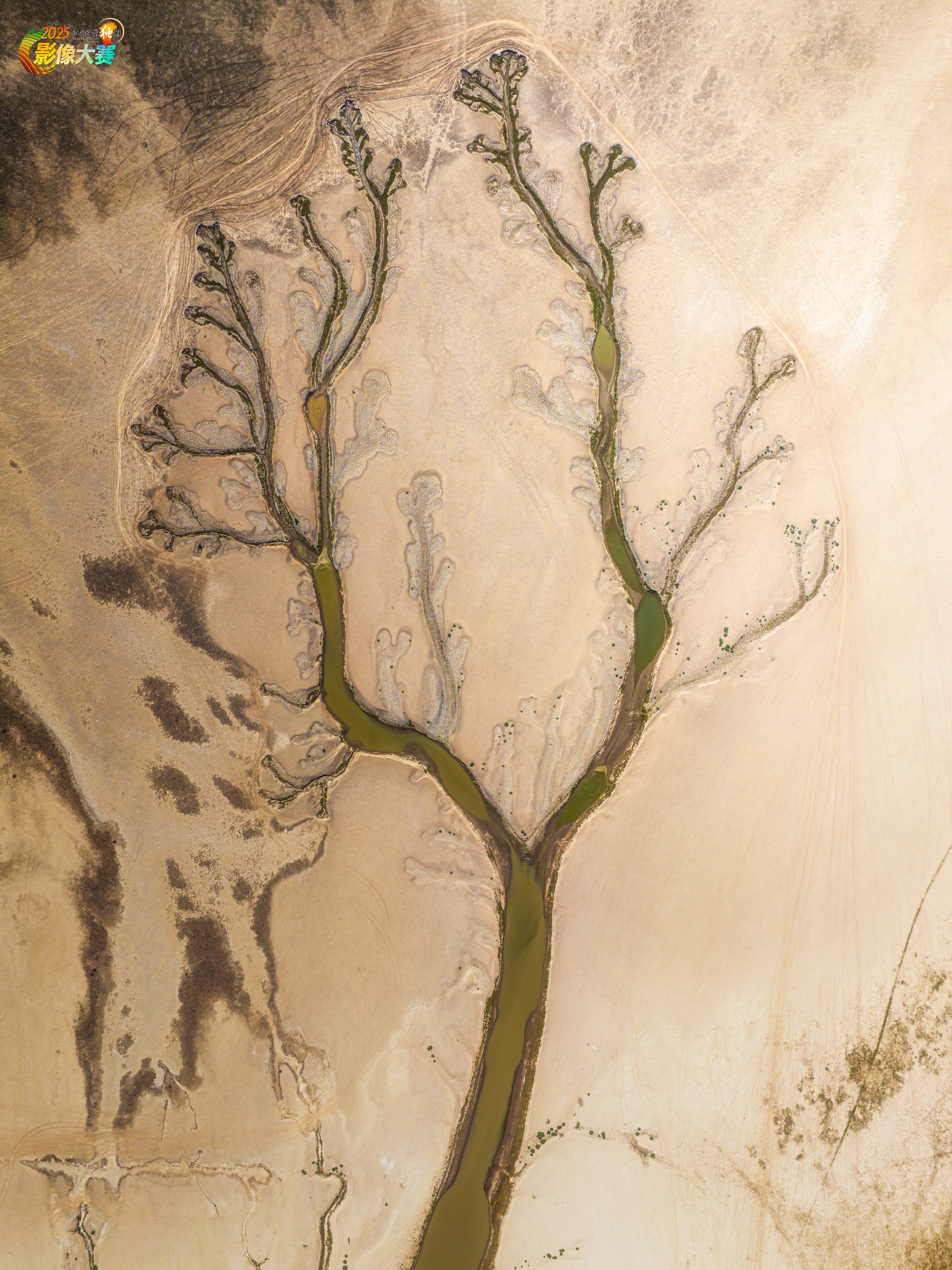 湖水退去后的鄱阳湖呈现出的大树纹理