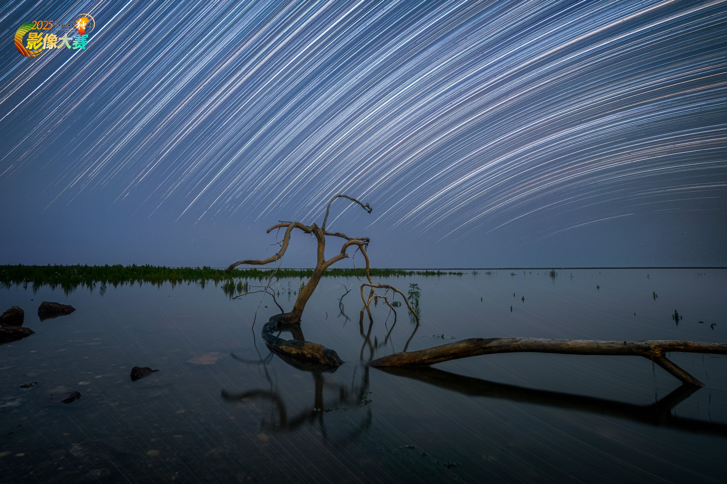 拍摄于江西九江都昌县鄱阳湖畔,在鄱阳湖畔,找了颗枯树,用枯树做前景。