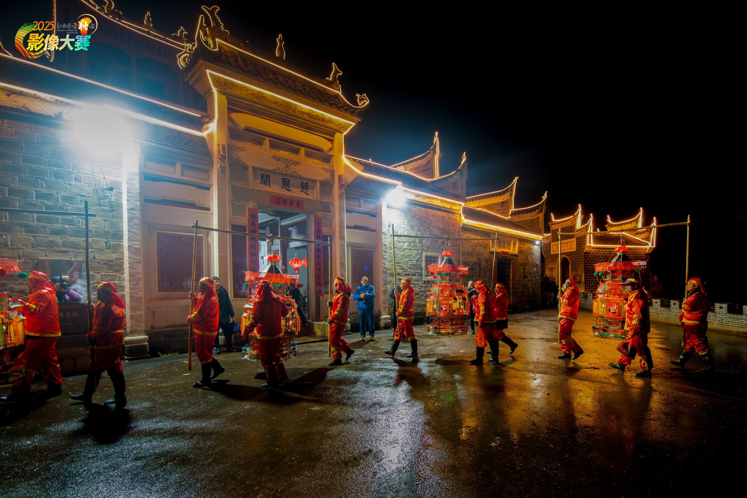 祠堂前,华灯下,宁都村民正进行祭祀活动