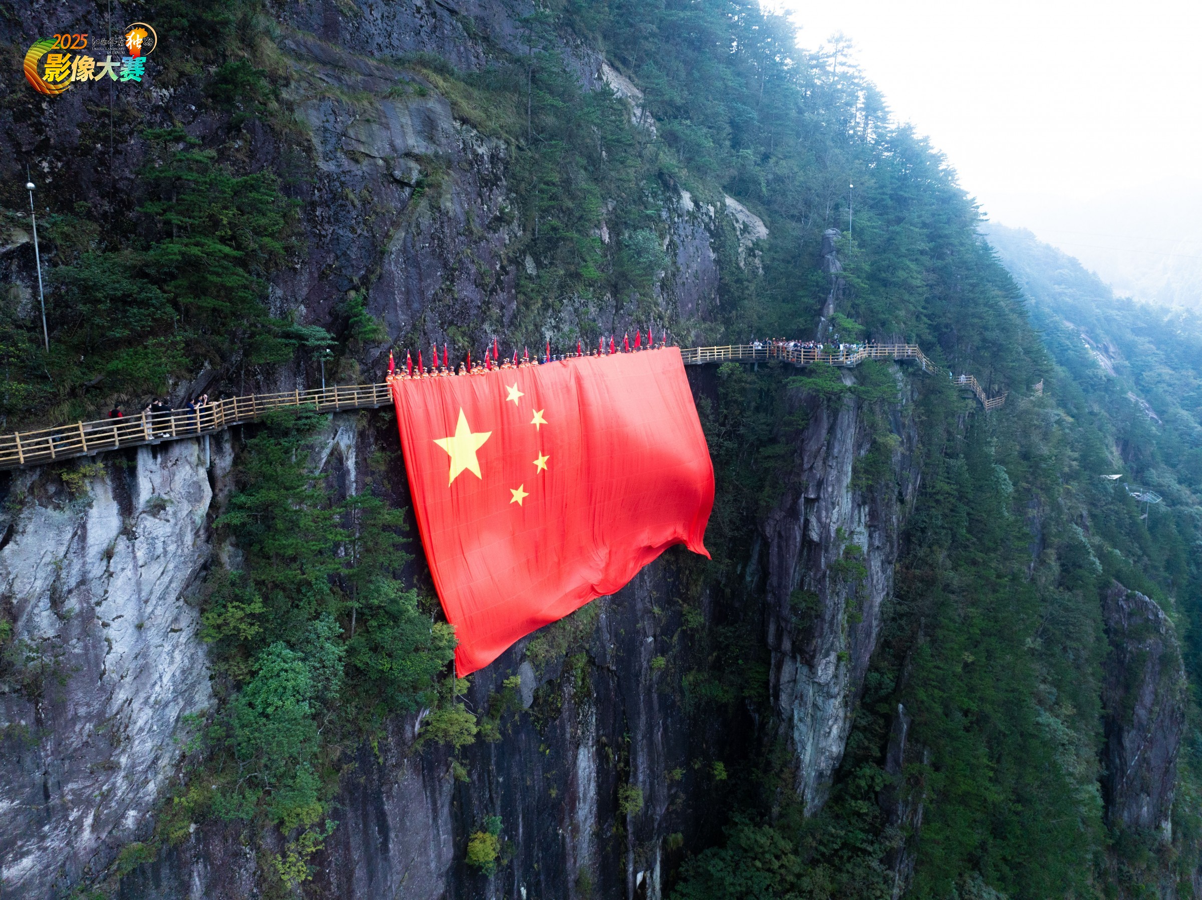 600平方巨幅国旗飘扬在明月山