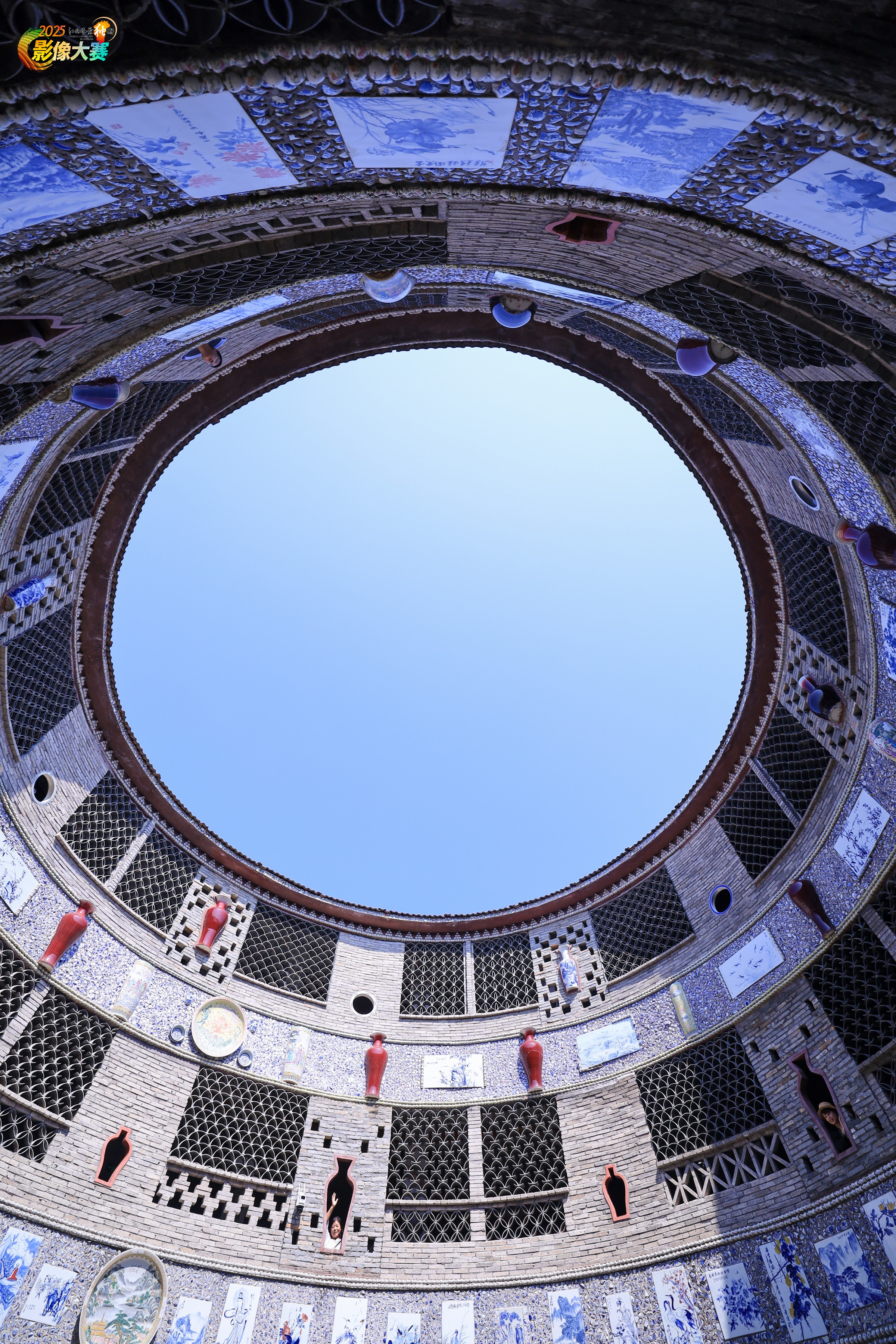 瓷宫宛如一个由万片碎瓷重生的巨大生命体,镶嵌于大地之上。这些被时间或意外损毁的瓷片,在此脱离了原有的实用功能,获得了新的艺术生命。青花的幽蓝、釉里红的浓烈、五彩的绚烂,它们跨越朝代与窑火,在余二妹的意志下重新组合,形成了一种新的文明图腾。