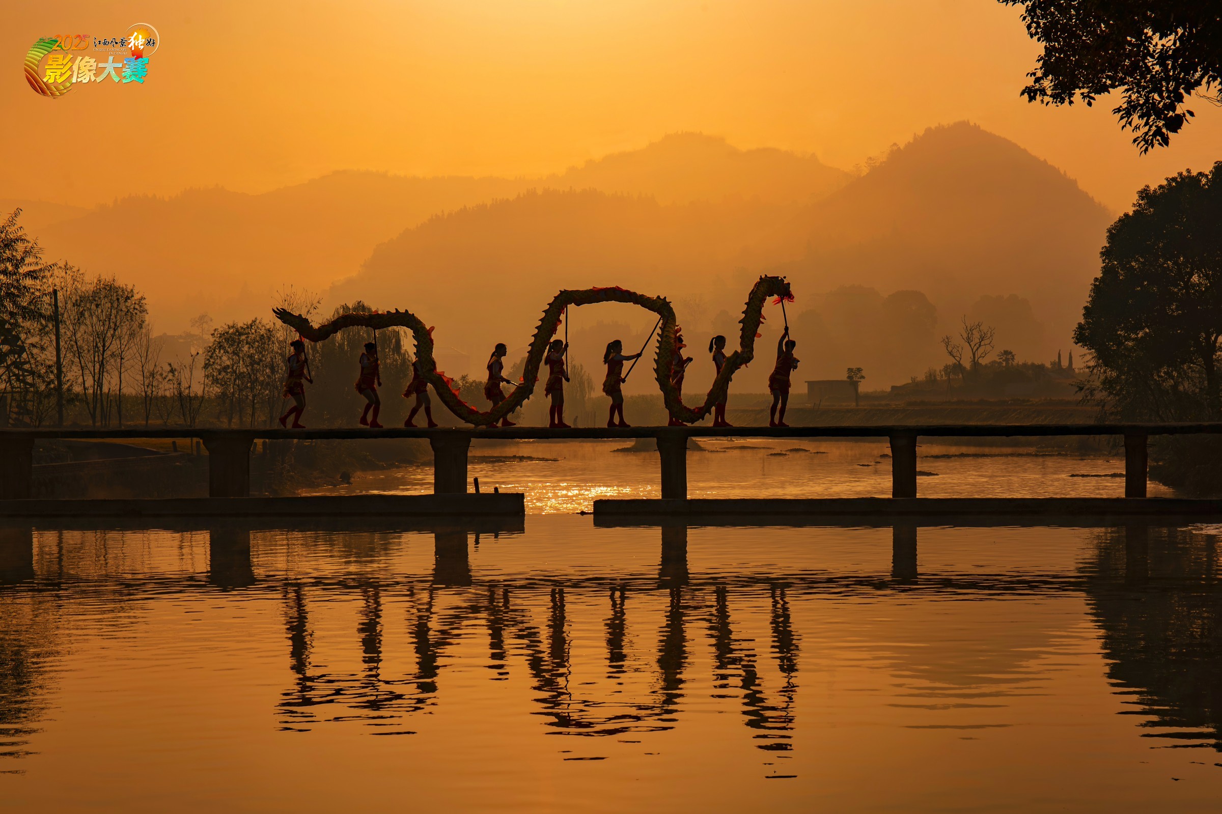 萍乡市上栗县东源乡女子舞龙队春节舞龙祈福。