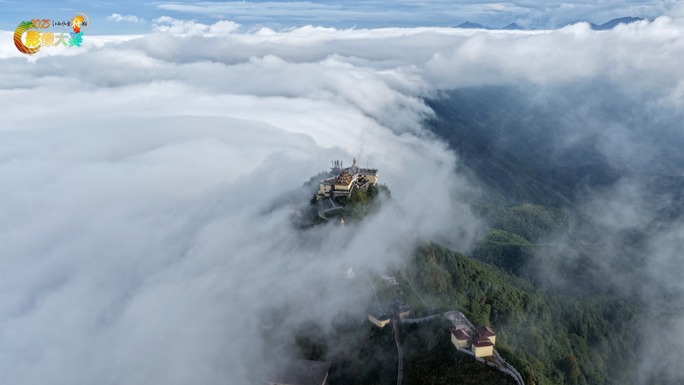 抚州市乐安县大华山顶的千年道观,在云海翻腾下显得格外飘逸