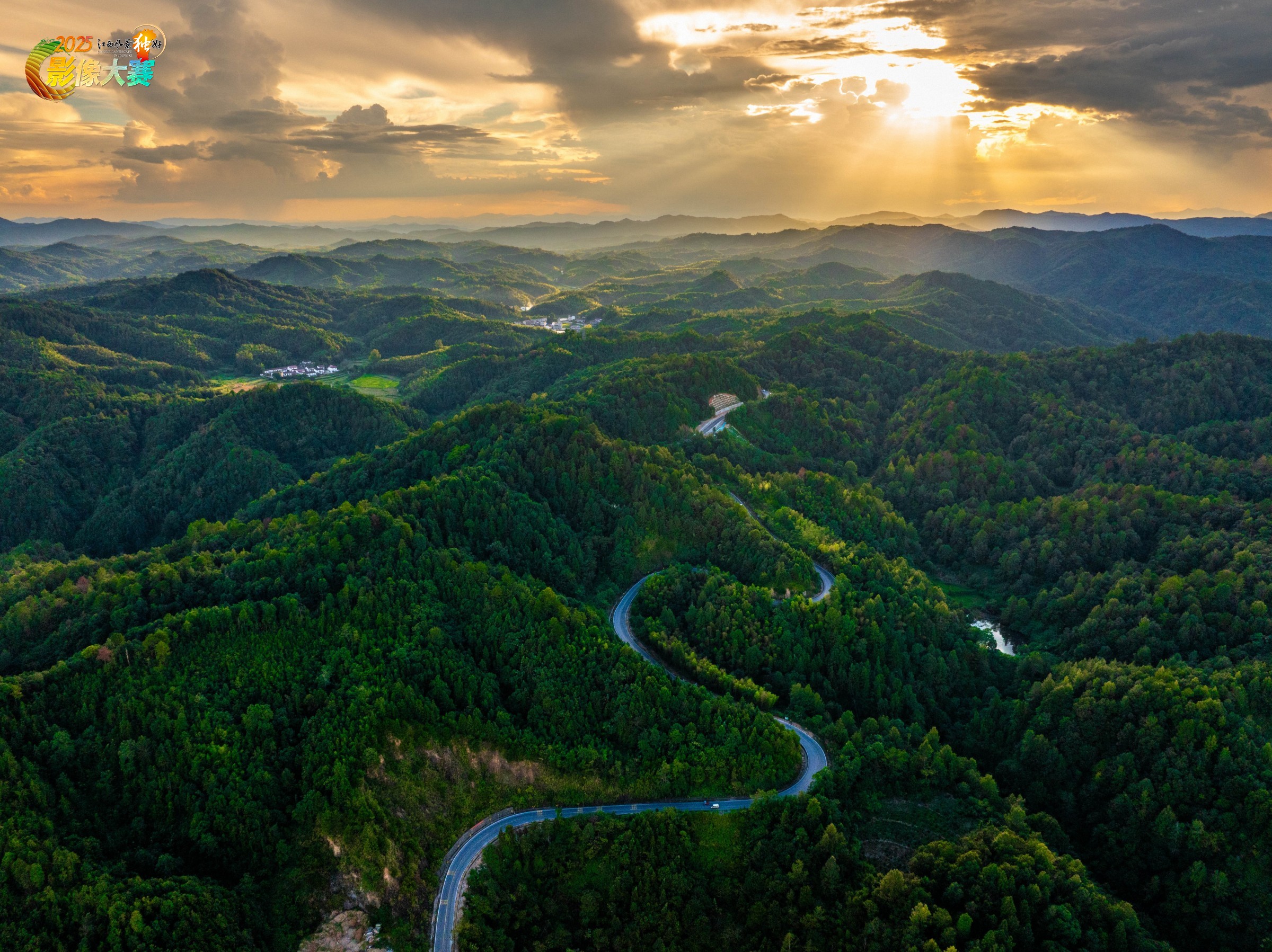 黎川县龙安镇大山岭,远山、公路、村庄在秋光漫洒下,景美如画。