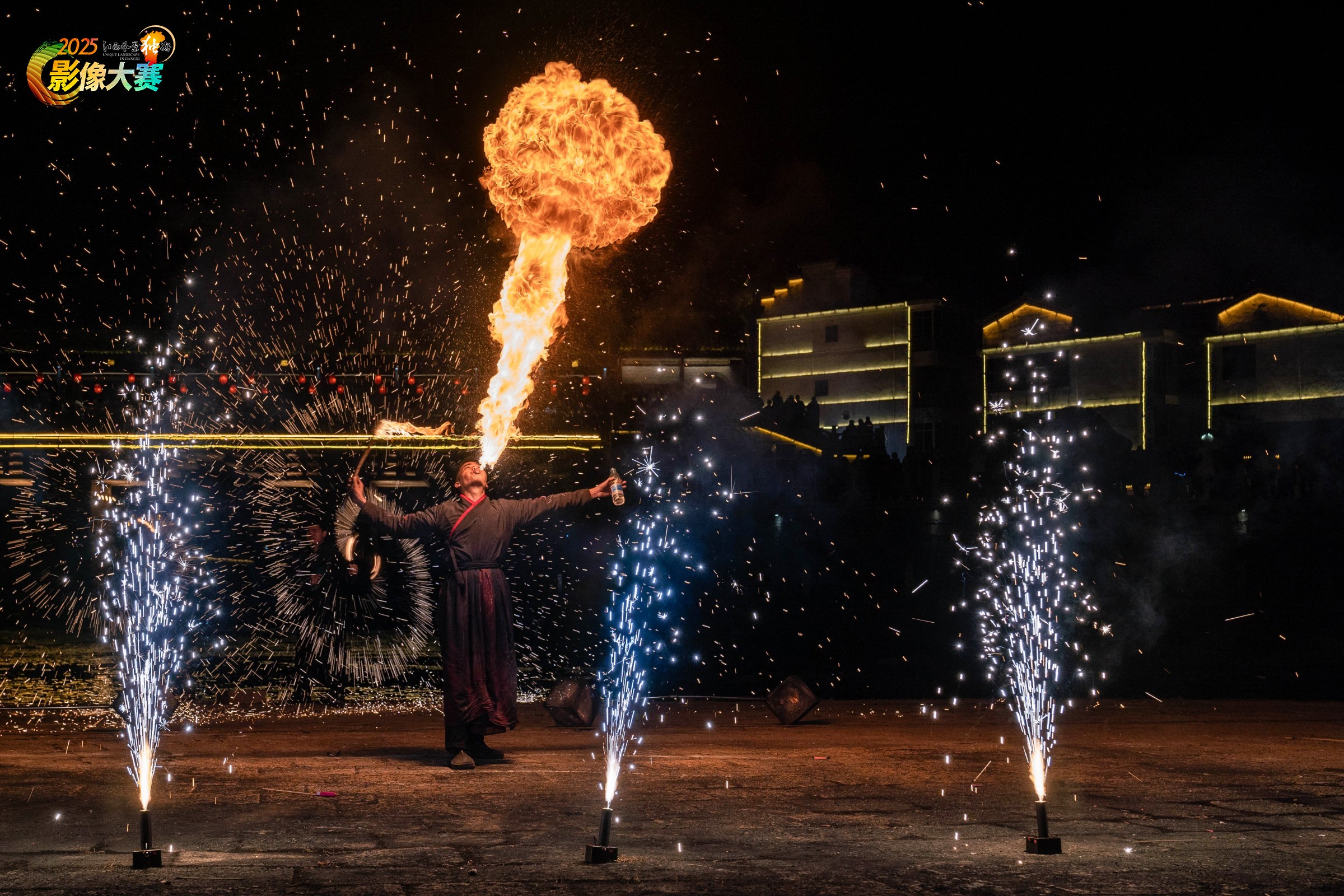 春节期间,江西省抚州市黎川县黎川古城的夜晚被非遗火艺点亮,非遗表演火壶、火扇舞、火刀、火棍、喷火等轮番上演,在夜空中划出绚丽的弧线,象征着驱邪避灾、迎接新春的美好寓意,火光映照着人们的笑脸,传递着喜庆祥和的节日氛围,展现了传统文化与现代生活的完美融合。