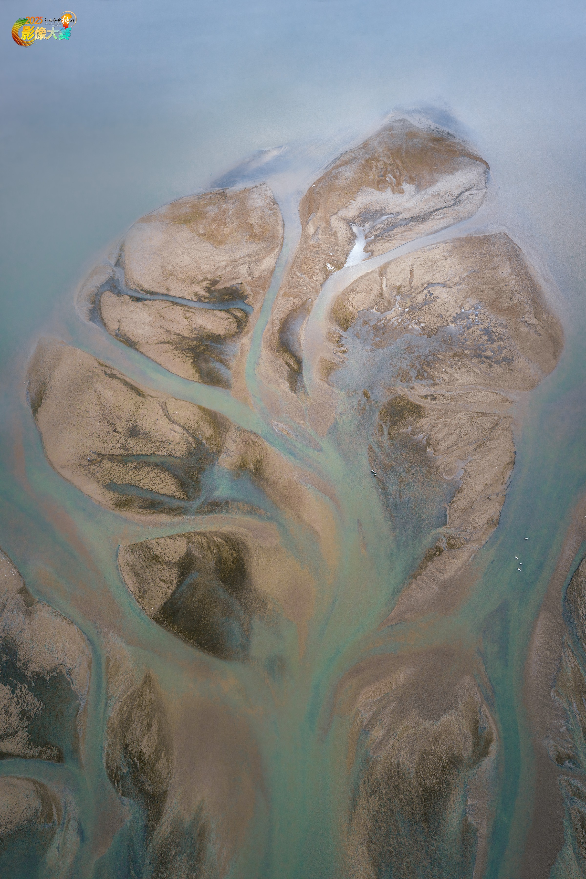 拍摄于枯水期的鄱阳湖,湖水冲刷出的脉络滩涂,恰似心脏的轮廓,是自然写给这片湖最温柔的情书