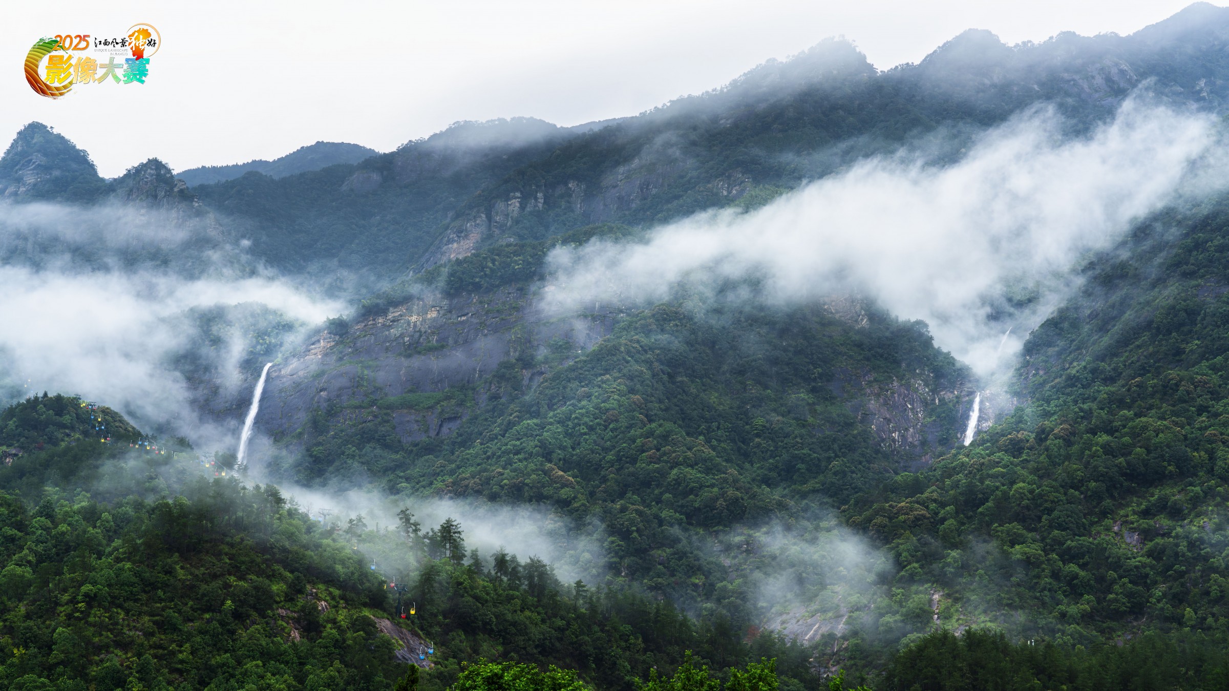 雨后的庐山秀峰景区,双瀑布齐现。