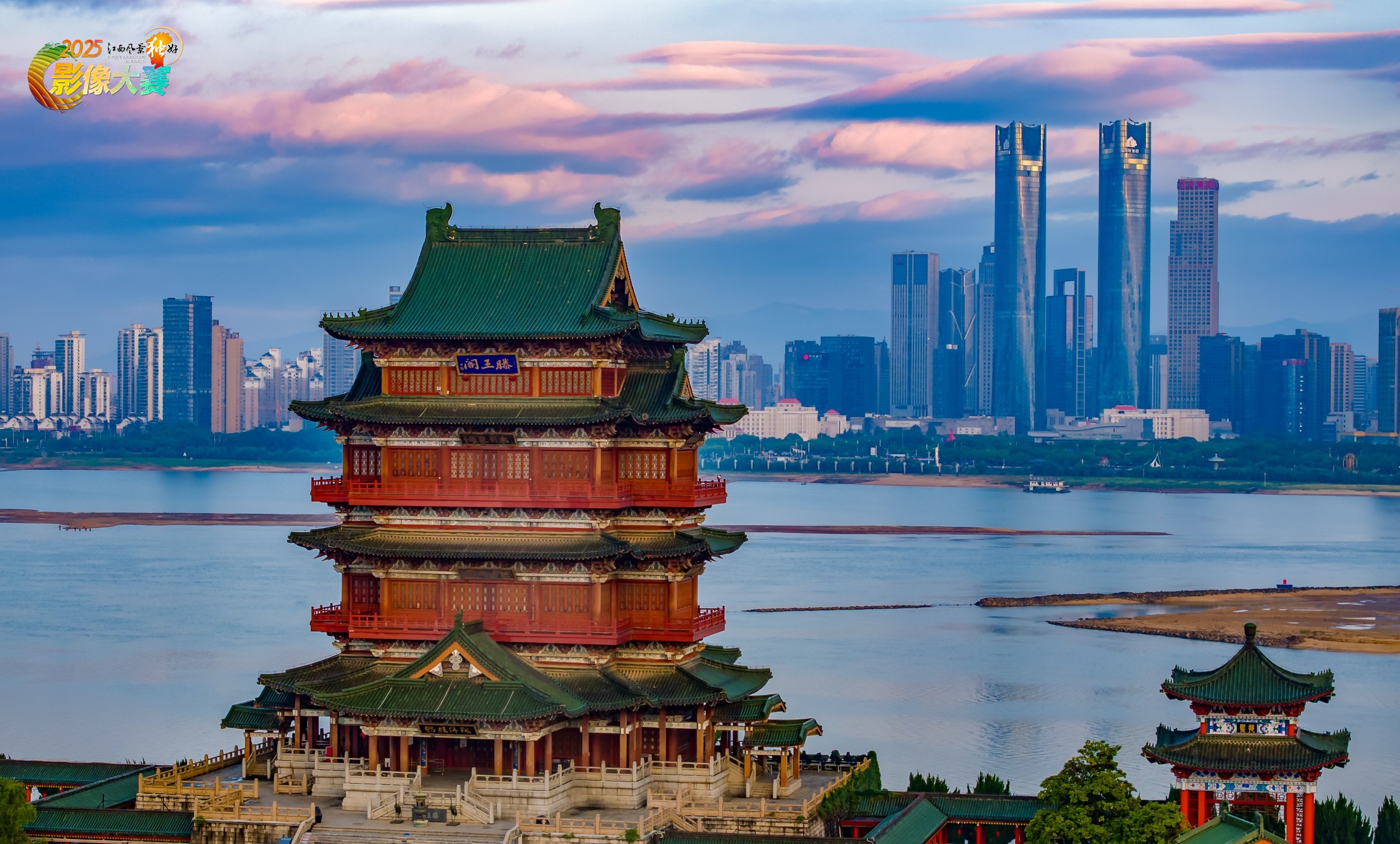 夏天台风过后,赣江两岸碧空如洗,彩霞飞舞。千年名楼滕王阁与南昌新地标绿地双子塔隔江相望,他们的同框,也如同中华传统文明与现代文明的对视,为南昌这座历史文化名城添上了浓墨重彩的一笔。