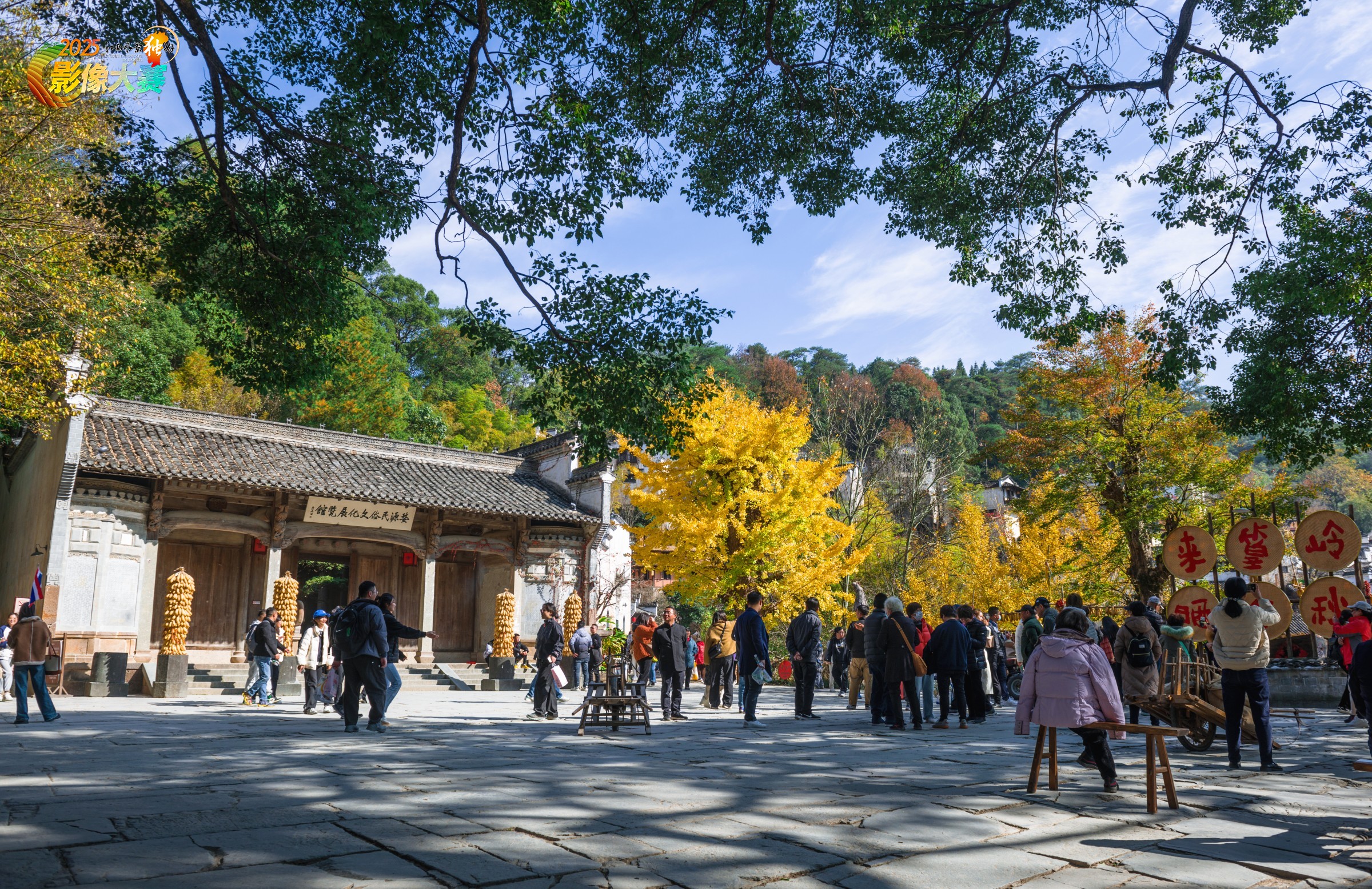 游客在篁岭参观民俗文化馆,感受岁月沧桑。