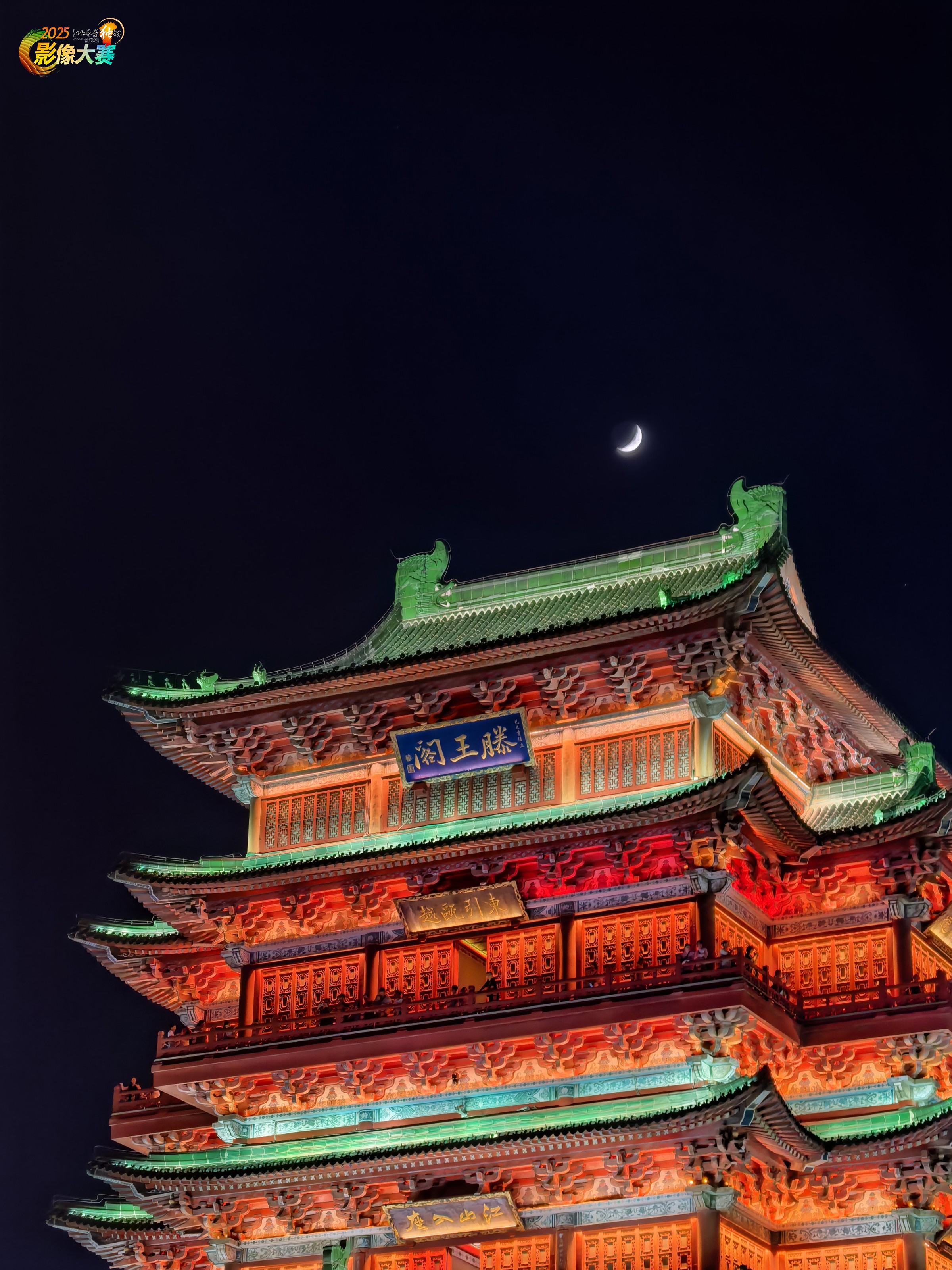 本组作品《阁月千秋》以“月”为引,通过远、中、近三种景别的精心构图,立体解构千年名楼滕王阁的夜景神韵,试图完成一场从宏观诗画到微观营造的视觉探索。