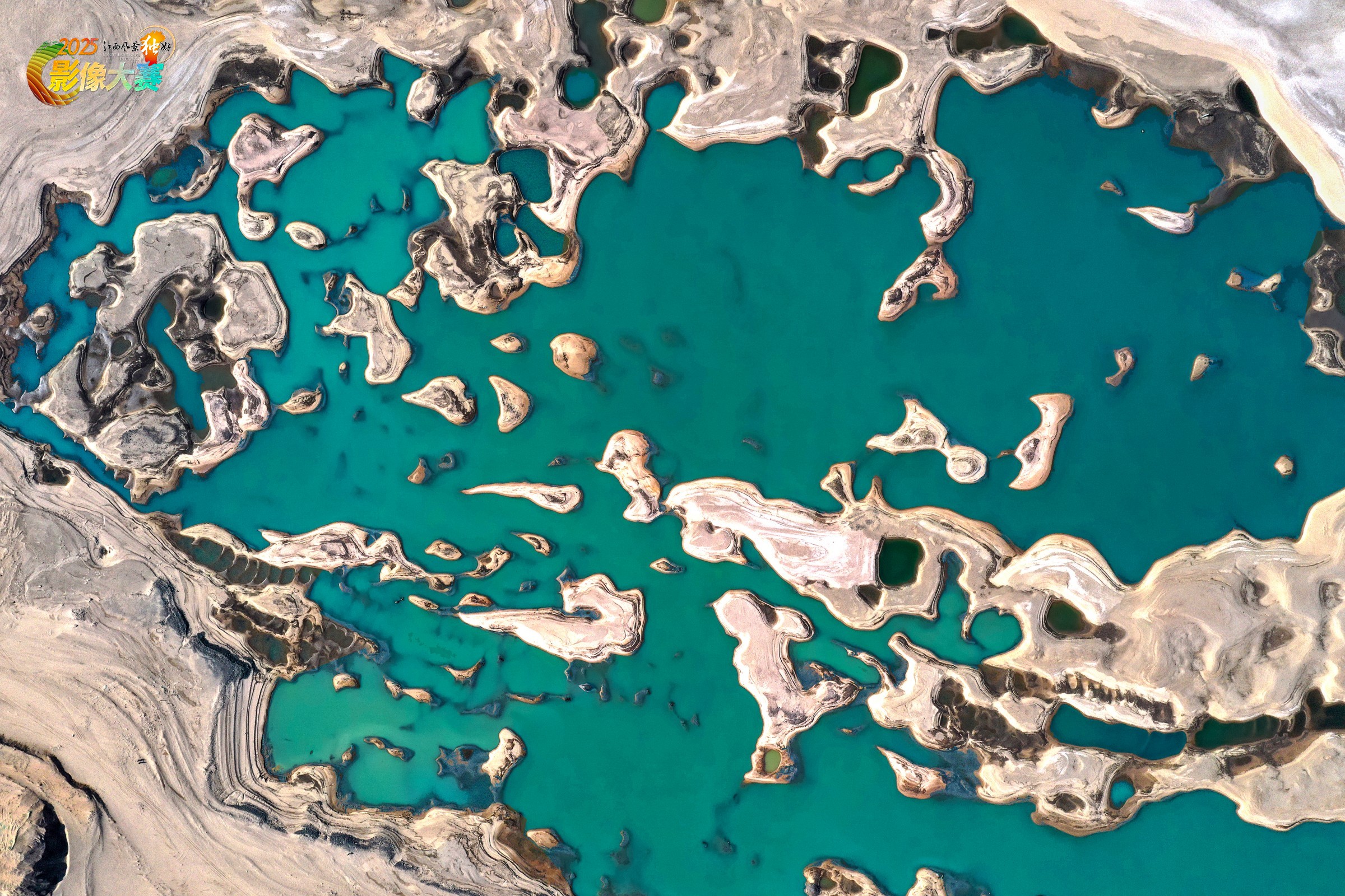 作品以其独特的视角和绚丽的色彩,将滩涂这一平凡的自然景观转化为充满想象力的艺术画面,让人仿佛置身于一个超现实的童话王国,感受到大自然的鬼斧神工和无穷魅力。
