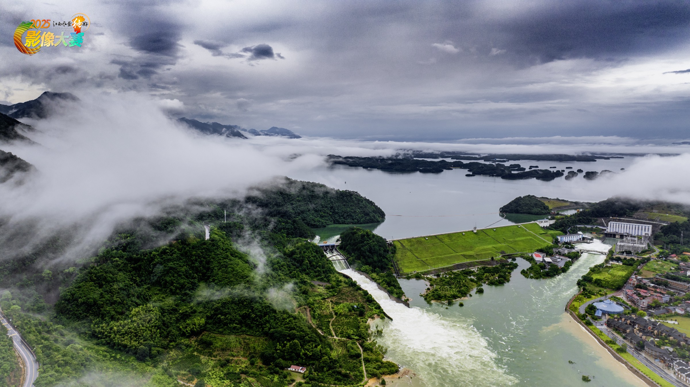 2024年汛期,闸门开启,碧水奔涌而下,如雷霆万钧,卷起千层浪,尽显庐山西海的磅礴气势与自然伟力