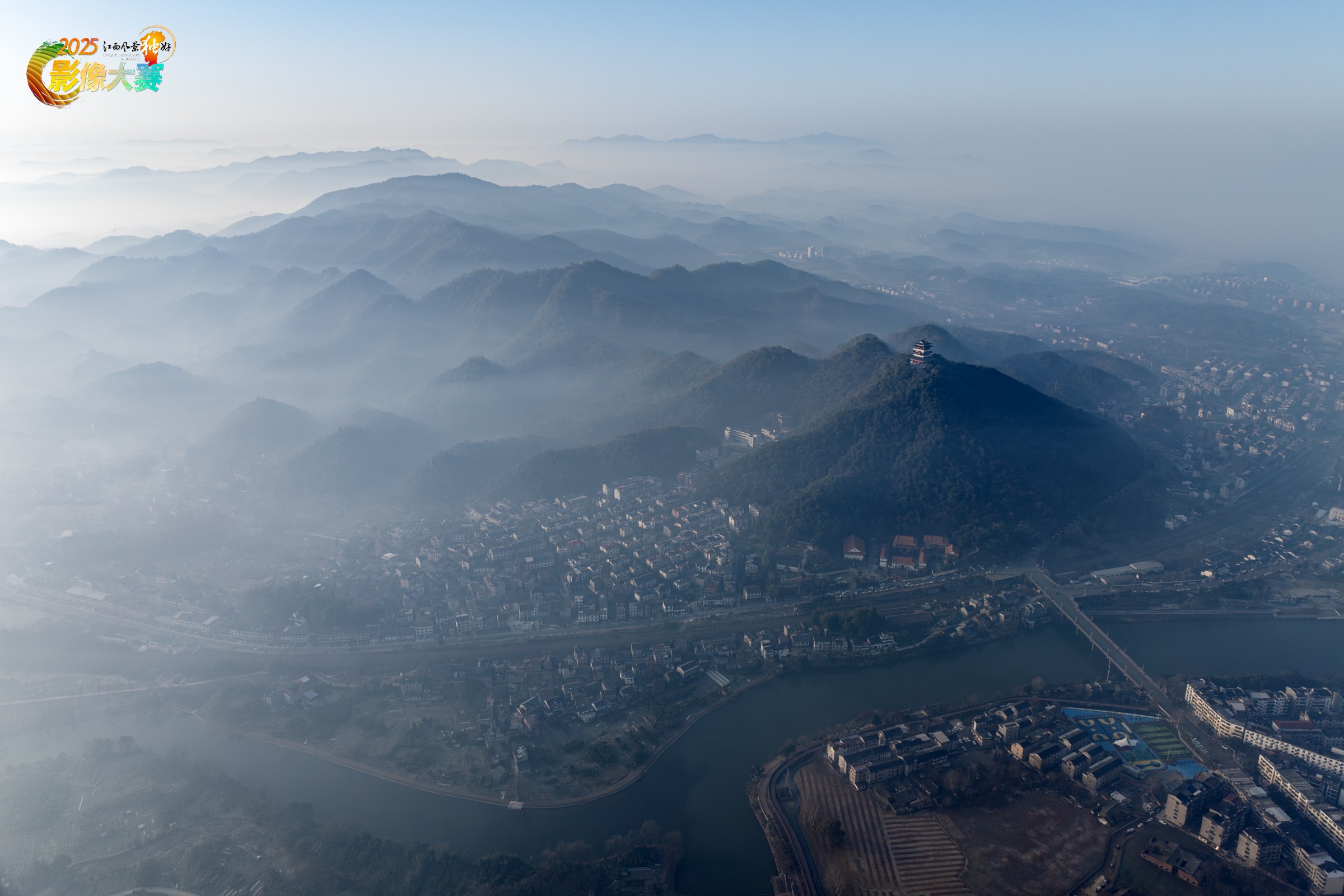 上饶市玉山县县城南侧的武安山,山下林木茂盛,寺庙古墓掩映其间;山下冰溪一线如带,萦绕吴越古城;河畔有绿洲成片,挑楼成排;且有城墙浮桥,古风犹存。同时,武安山拥有丰富的历史遗迹和文化景点,如阎立本墓、普宁寺、端明书院、旌德会馆、考棚和文成塔等。2025年1月29日(正月初一),晨雾缭绕,武安山如梦如幻,武安楼在阳光下烨烨生辉。